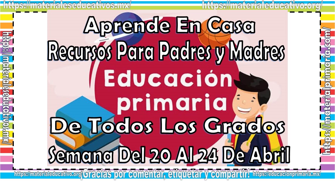 Amigos y compañeros docentes que nos visitan, como saben la cuarentena o periodo de aislamiento de extendió hasta el 30 de mayo y 17 de mayo en algunas partes de la república, siempre y cuando permanezcamos en casa y sigamos con las recomendaciones necesarias y emitidas por la Secretaria de Salud, para continuar con el aprendizaje de nuestros alumnos la Secretaria de Educación Pública puso en marcha la estrategia aprende en casa con varios recursos para padres y madres de familia, donde podremos encontrar materiales para que nuestros alumnos e hijos trabajen desde su casa, estos materiales están organizados desde inicial, preescolar, primaria y secundaria, en esta oportunidad que tenemos con ustedes les queremos compartir el siguiente material aprende en casa recursos para padres y madres de todos los grados de primaria semana del 20 al 24 de abril esperamos que les sea de gran utilidad, no olviden compartir nuestros enlaces en sus redes sociales y recuerden etiquetar a sus compañeros y amigos docentes en nuestras publicaciones.