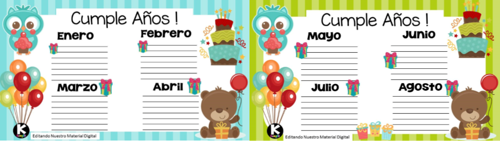 Descargar: Diseños para anotar los cumpleaños de los alumnos