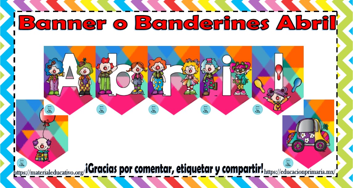 Compañeros y amigos docentes que visitan material educativo, queremos agradecer por ser parte de este gran proyecto donde compartimos el mejor material educativo de la red, en esta ocasión queremos compartir con todos ustedes este colorido y bonito banner o banderines del mes de Abril para poder adornar y darle un toque especial y colorido a nuestra aula o escuela, agradecermos al Maestro Aldo Pruneda por diseñar y compartir con todos nosotros estos fantásticos diseños, en material educativo les pedimos que nos apoyen compartiendo nuestros enlaces en sus redes sociales y etiquetando a sus compañeros y amigos docentes en nuestras publicaciones.