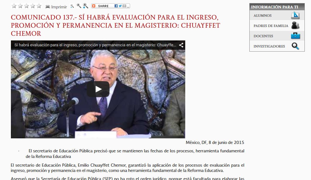 Aseguró que la Secretaría de Educación Pública (SEP) no ha roto el orden jurídico, porque está facultada para elaborar las convocatorias de los concursos respectivos, y compartió con el Instituto Nacional para la Evaluación de la Educación el propósito de reanudar y fortalecer los procesos respectivos, organismo al que se hoy se le mandó un comunicado con las consideraciones técnicas y jurídicas de la suspensión de los procesos.