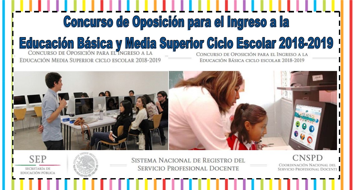 La Secretaría de Educación Pública, las Autoridades Educativas y los Organismos Descentralizados correspondientes, invitan a participar en el Concurso de Oposición para el Ingreso a la Educación Media Superior, ciclo escolar 2018 – 2019, a: Egresados de las Instituciones Educativas de Nivel Superior públicas y particulares, con reconocimiento de validez oficial. Consulte las bases y los términos establecidos en las Convocatorias que se publicarán, las cuales contienen, entre otros aspectos: requisitos de participación; proceso de pre-registro y registro; fecha, sedes y horarios de aplicación del Examen Nacional, así como la publicación de resultados.