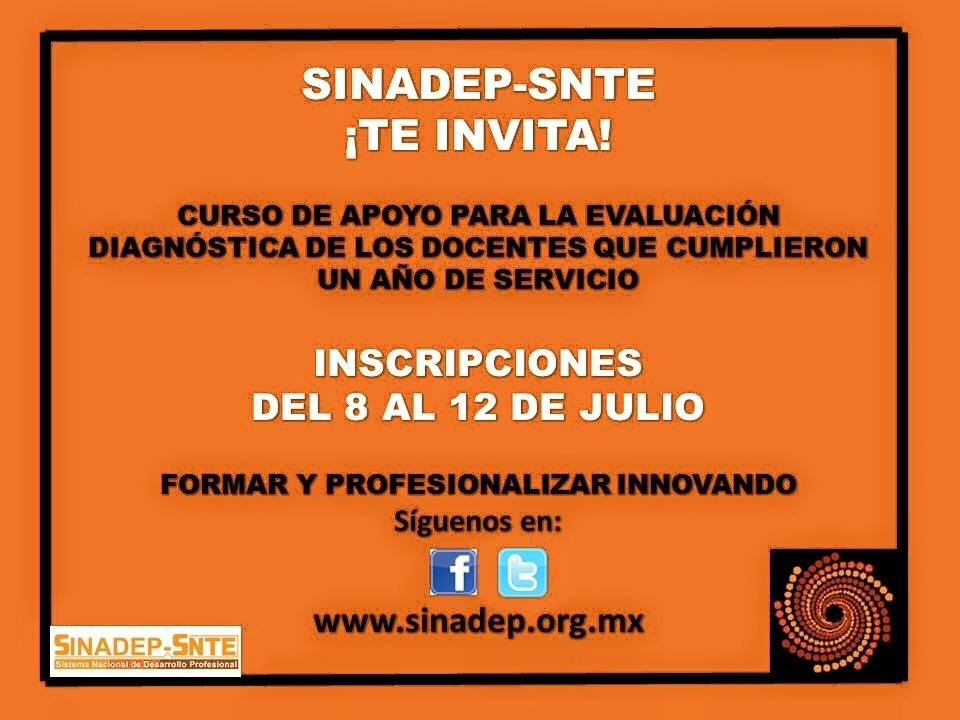 Compañeros el SNTE mediante el SINADEP en apoyo a la formación docente y a la gran labor que sabemos desempeñas, te invita a participar en el próximo curso virtual, «Curso de apoyo para la evaluación diagnóstica de los docentes que cumplieron un año de servicio». Las inscripciones estarán abiertas a partir del 8 de julio al 12 de julio en la página oficial del SINADEP, nosotros les estaremos informando más sobre este curso.