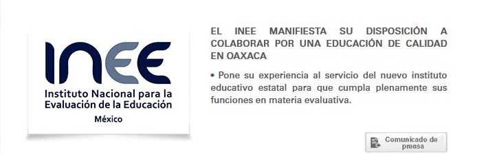 En relación con el decreto que reforma al Instituto Estatal de Educación Pública en Oaxaca (IEEPO), anunciado esta mañana por la autoridad local, el Instituto Nacional para la Evaluación de la Educación (INEE) manifiesta su apoyo, en el marco de sus atribuciones, a las decisiones que buscan mejorar la calidad de los servicios educativos y garantizar el derecho a una educación de calidad para los niños y jóvenes, que debe estar por encima de cualquier otro interés. Les dejamos el comunicado completo para su información sobre este caso que sucede en el estado de Oaxaca con lo de la reforma educativa.
