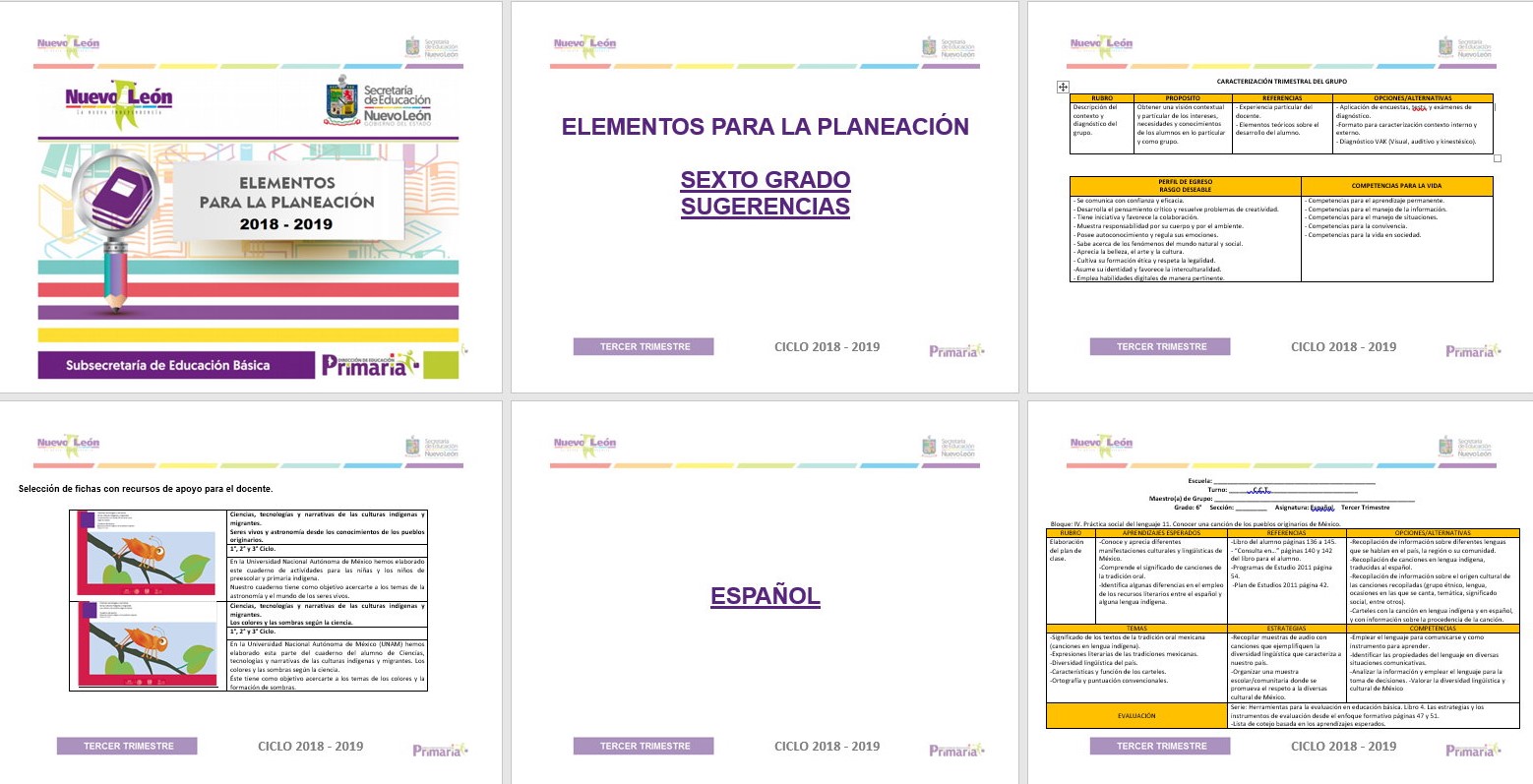 Queremos agradecer a la Secretaria de Educación Pública del Estado de Nuevo León por diseñar cada trimestre durante el presente ciclo escolar este excelente material de los elementos de la planeación del sexto grado de primaria del tercer trimestre ciclo escolar 2018 – 2019 para poder apoyarnos en la elaboración de nuestras planeaciones escolar de nuestro grado, es un material muy valioso e importante, estamos seguros compañeros y amigos docentes que nos visitan que les será de gran utilidad en su labor educativa, muchas gracias por compartir nuestros enlaces en sus redes sociales y por etiquetar a sus compañeros y amigos docentes en nuestras publicaciones.