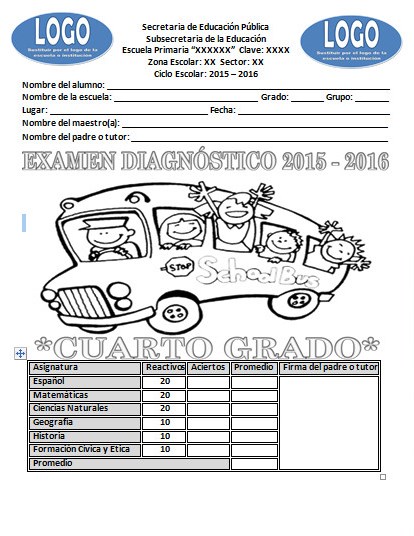 Descargar: Examen de diagnóstico del cuarto grado del ciclo escolar 2015 – 2016