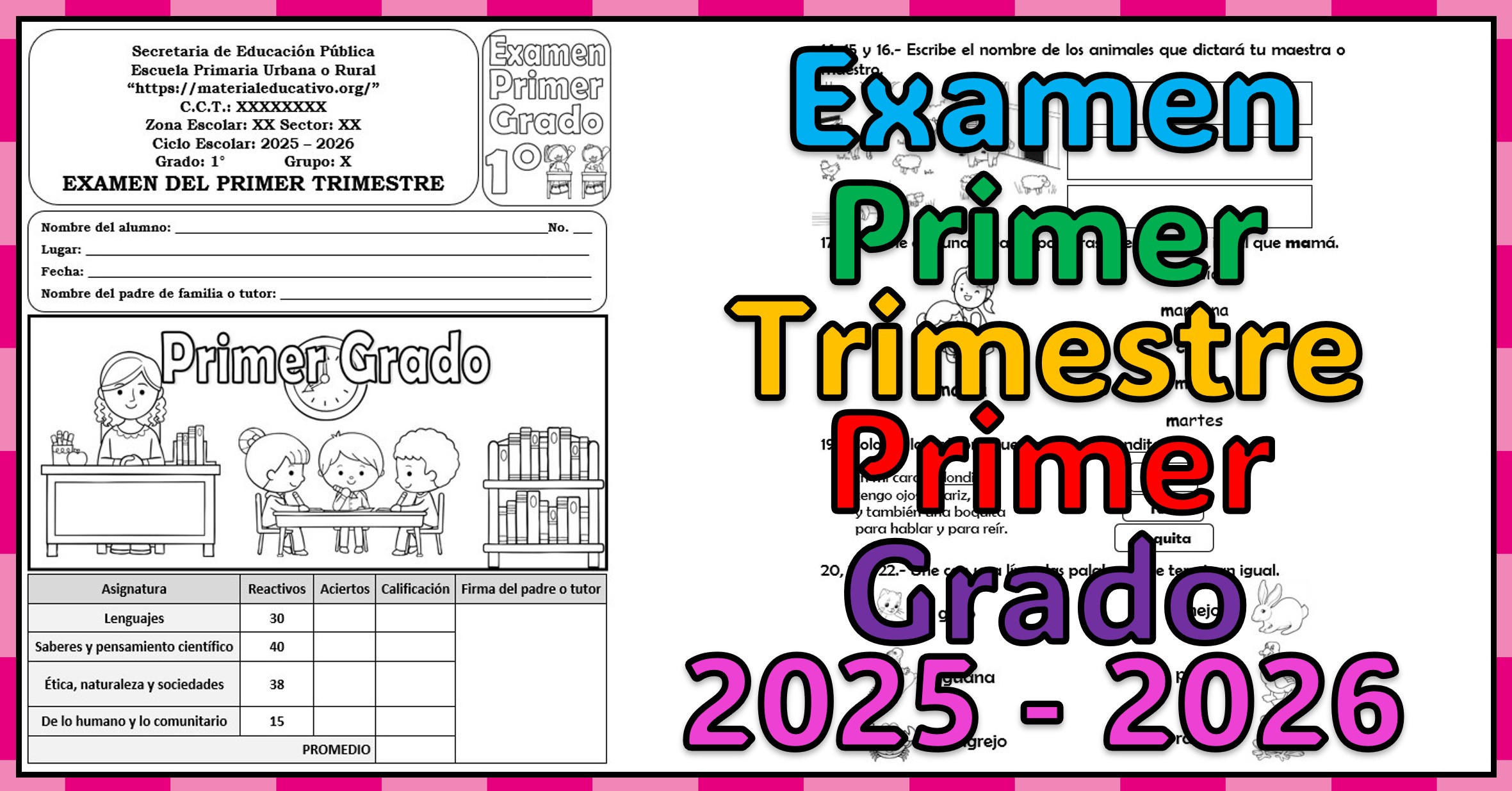 Examen del primer grado del primer trimestre del ciclo escolar 2025 – 2026