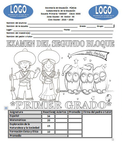 Descargar: Examen del primer grado para el segundo bloque del ciclo escolar 2015 – 2016