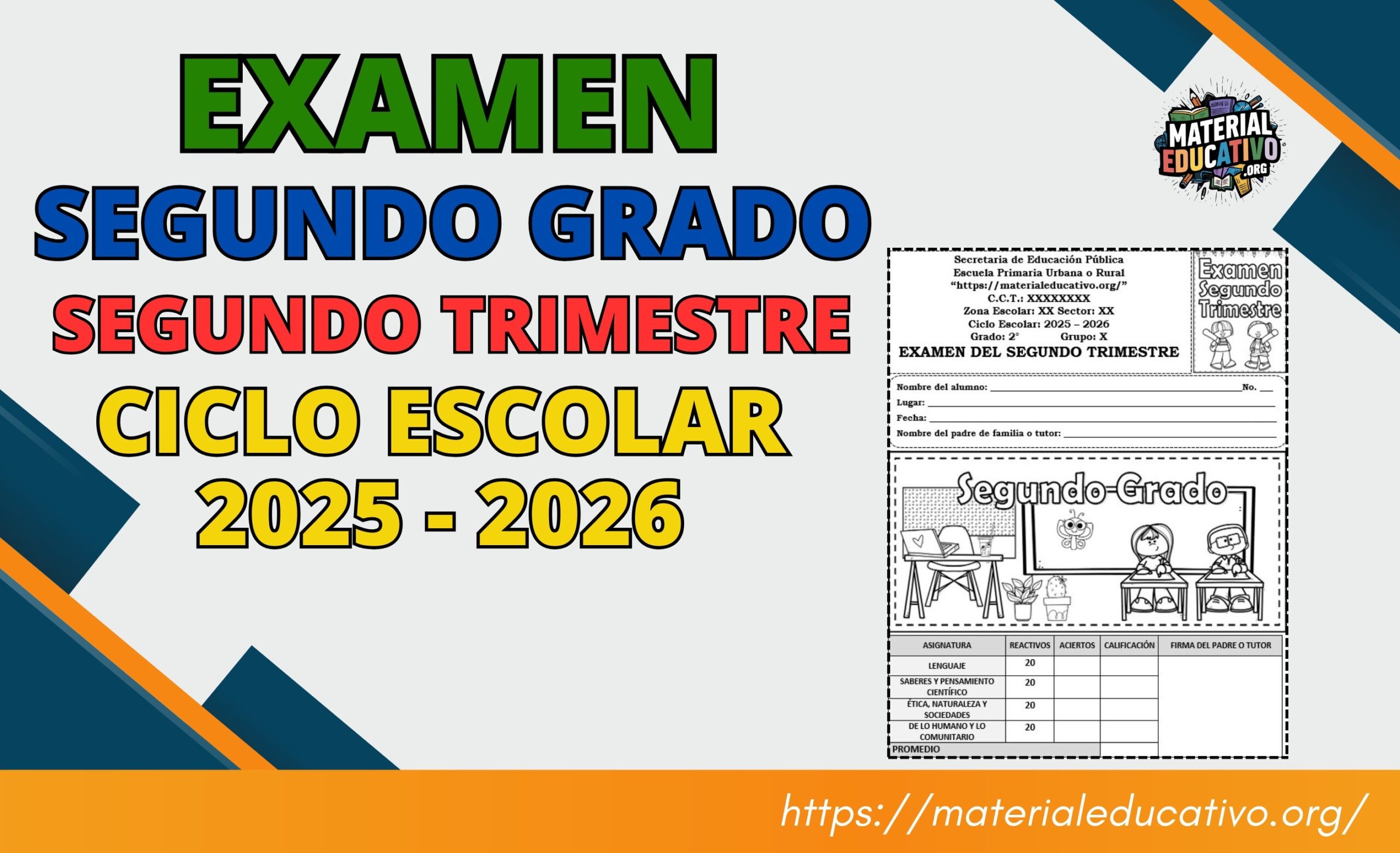 Compañeros que nos visitan, queremos compartir con todos ustedes el Examen del segundo grado del segundo trimestre del ciclo escolar 2025 – 2026.