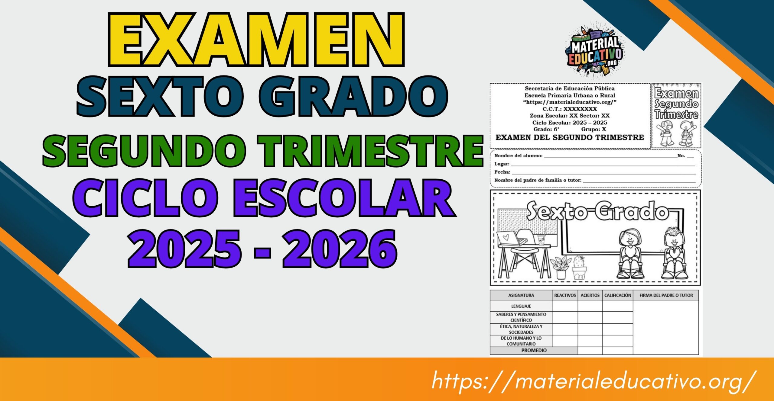 Compañeros que nos visitan, queremos compartir con todos ustedes el Examen del sexto grado del segundo trimestre del ciclo escolar 2025 – 2026.