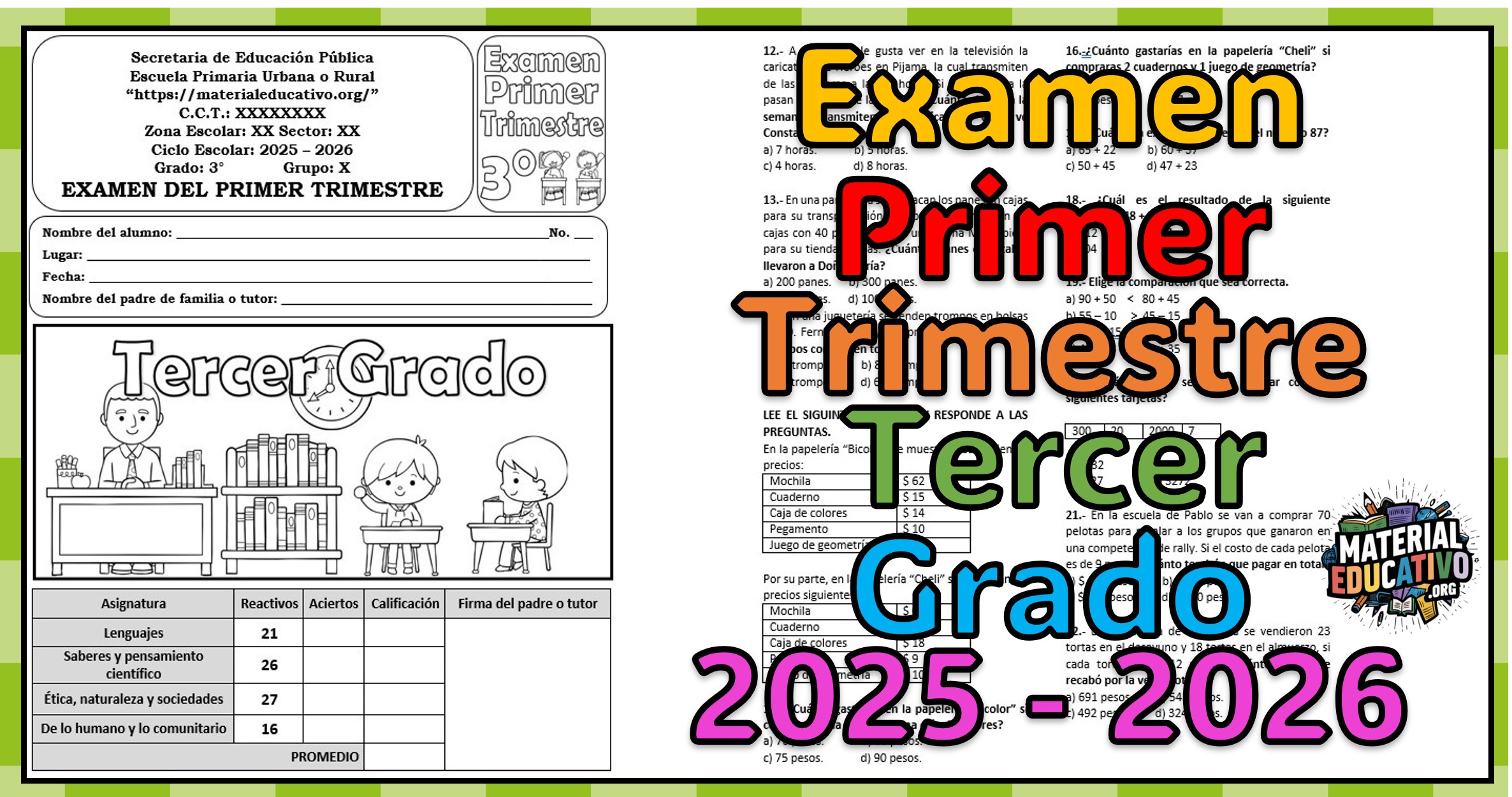Examen del tercer grado del primer trimestre del ciclo escolar 2025 – 2026