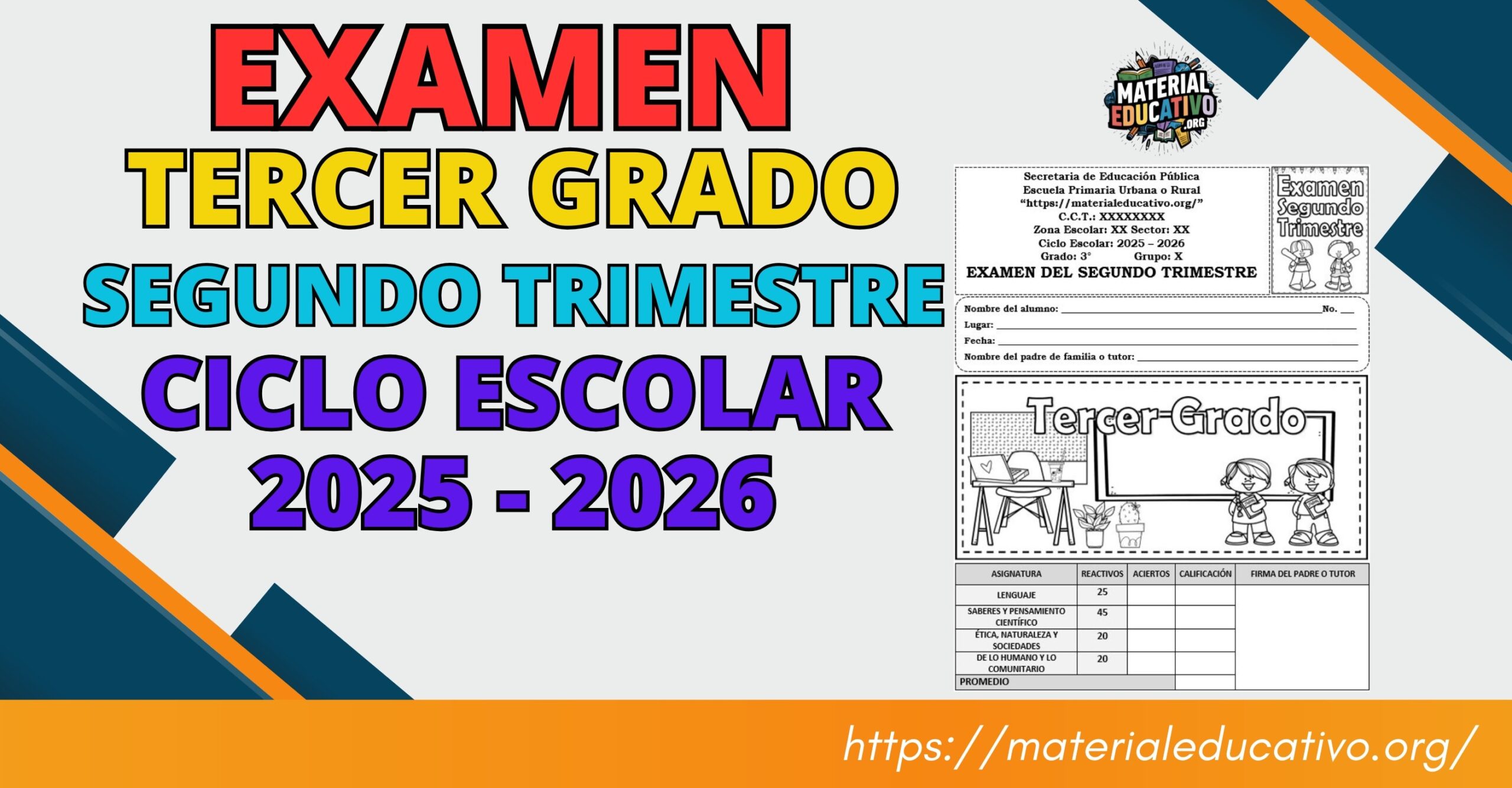 El Examen del Tercer Grado del Segundo Trimestre del Ciclo Escolar 2025 – 2026 es un recurso educativo diseñado para apoyar a docentes de educación primaria en la evaluación de los aprendizajes adquiridos por los alumnos durante el segundo trimestre.