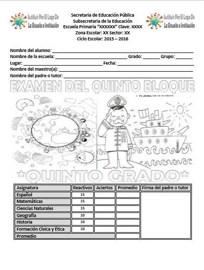 Descargar: Examen final del quinto grado del ciclo escolar 2015 – 2016