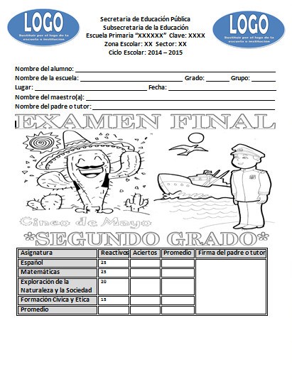 Descargar: Examen final para el segundo grado del ciclo escolar 2014 – 2015