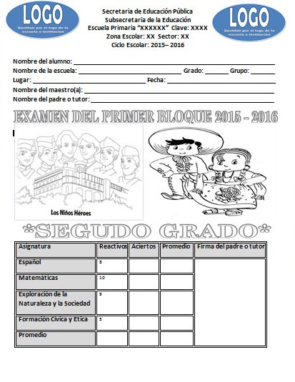 Descargar: Examen para el segundo grado del primer bloque del ciclo escolar 2015 – 2016 con hoja de respuestas