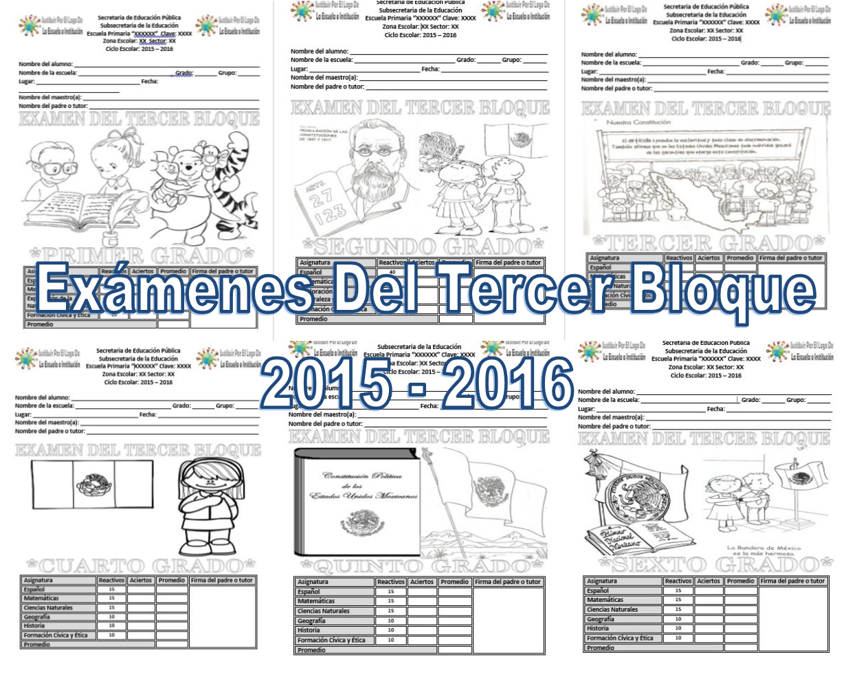 Les compartimos estos excelentes exámenes del tercer bloque de todos los grados del ciclo escolar 2015 – 2016 el cual es una excelente herramienta para la evaluación de nuestros alumnos, el cual es necesario se realicen las adecuaciones necesarias para la utilización en nuestro grupo, agradecemos al autor de este fabuloso examen, les agradecemos que compartan nuestros enlaces en sus redes sociales, muchas gracias por su apoyo amigos que nos visitan y acompañan.
