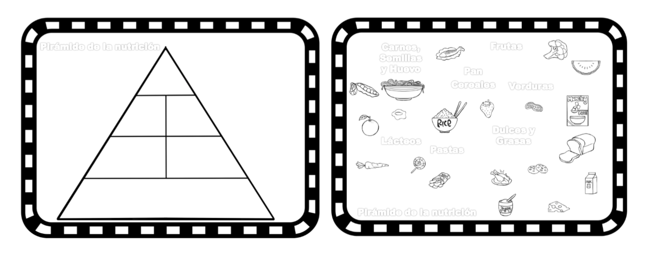Descargar: La pirámide la nutrición en blanco y negro para colorear con actividades