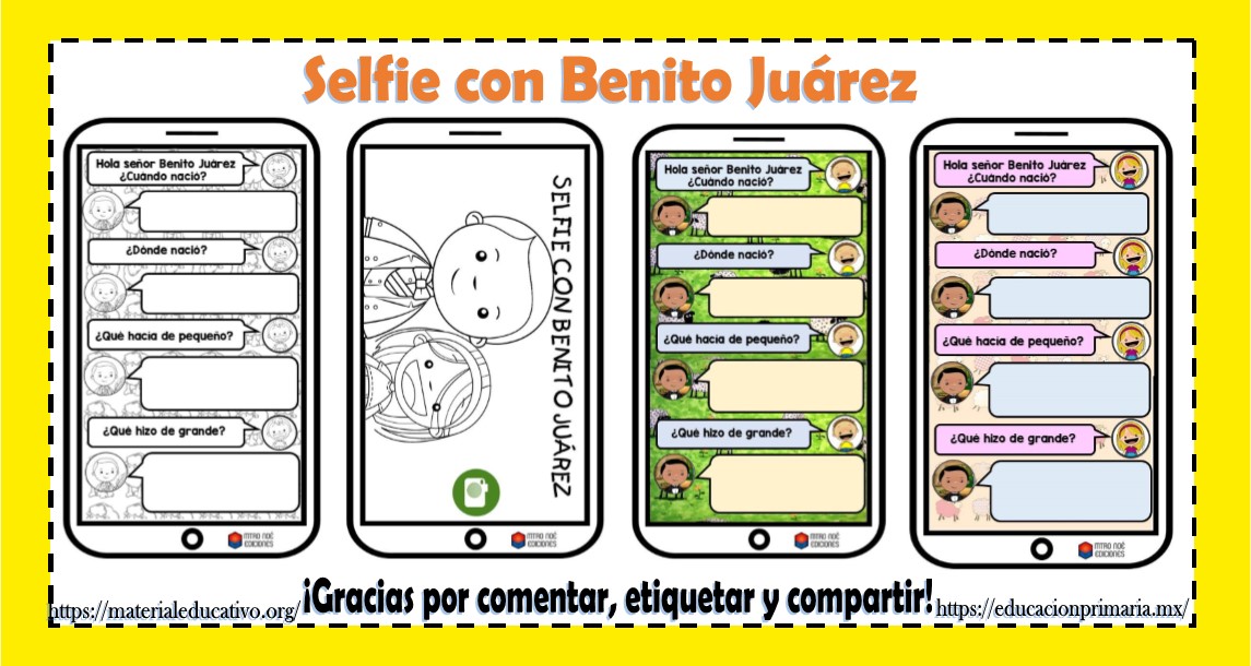 Compañeros y amigos docentes que nos visitan queremos agradecer a Noe Orozco Andrade por diseñar y compartir con todos nosotros esta Selfie con Benito Juárez para poder trabajar con nuestros alumnos sobre la vida de Benito Juárez, esperando que este material les sea interesante queremos agradecer que nos apoyen compartiendo nuestros enlaces en sus redes sociales, muchas gracias por su magnifico apoyo.
