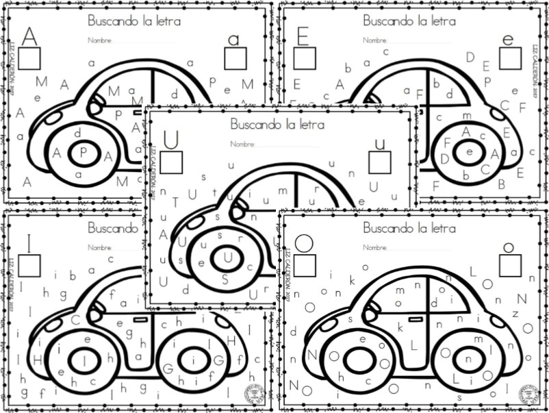 Descargar: Fantástico material colorea las vocales del carro para preescolar y primer grado de primaria