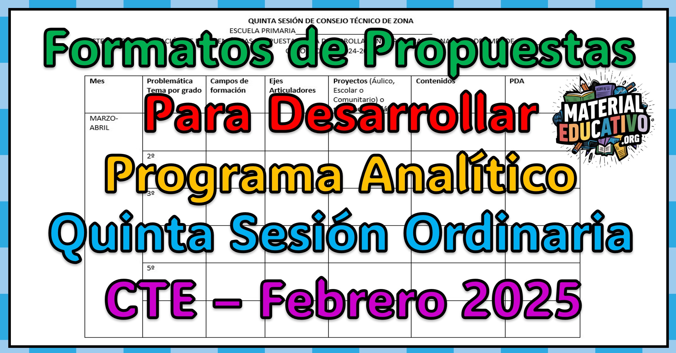Compañeros y compañeras que nos visitan, queremos compartir con todos ustedes el Formato de propuestas para desarrollar en el programa analítico de la Quinta Sesión Ordinaria del Consejo Técnico Escolar Febrero de 2025 por grado y escuela.