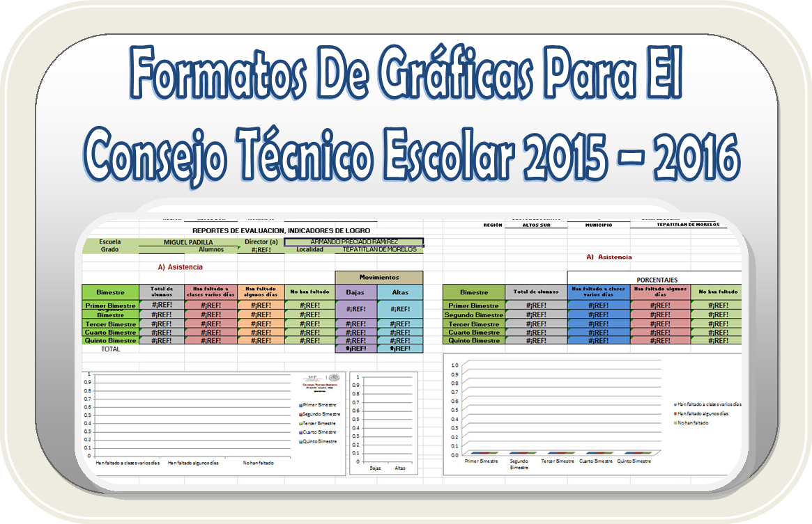 Como en el ciclo pasado tenemos que realizar ciertas graficas sobre los indicadores de logro de cada ruta de mejora escolar de acuerdo con los objetivos previstos en cada plantel, por lo tanto y agradeciendo al autor de este material les compartimos los Formatos de gráficas para el consejo técnico escolar 2015 – 2016, esperando que podamos prepáranos más para los consejos técnicos escolares y facilitar nuestra labor. Muchas gracias por su apoyo compañeros y amigos docentes.