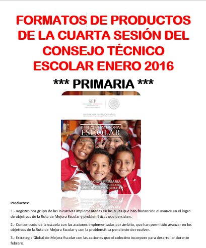 Descargar: Formatos de los productos de la cuarta sesión del consejo técnico escolar enero 2016 primaria