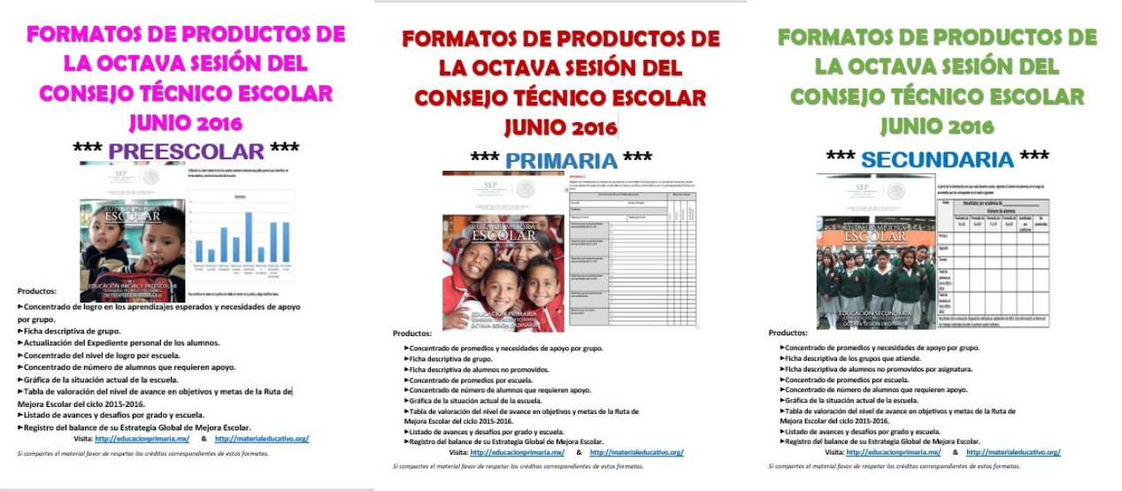 Formatos De Los Productos De La Octava Sesión Del Consejo Técnico Escolar Ciclo Escolar 2015 – 2016 de preescolar, primaria y secundaria