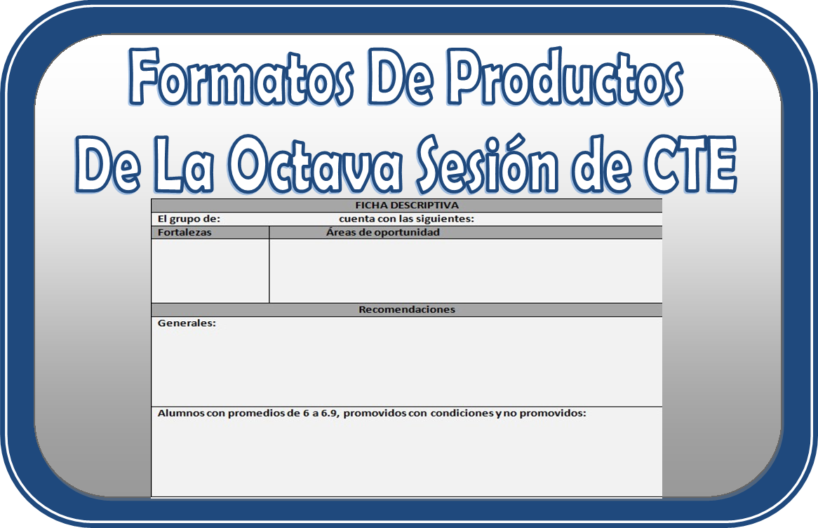 Compartimos los últimos formatos de productos de la octava sesión de consejo técnico escolar del ciclo escolar 2014 – 2015 estos formatos nos servirán para agilizar nuestra labor educativa en el consejo técnico escolar, estamos en la recta final y este será la última sesión que se realizara el último viernes del mes de junio, esperamos que les sea de mucha utilidad compañeros, esperamos que puedan compartir con sus compañeros, gracias por su apoyo.