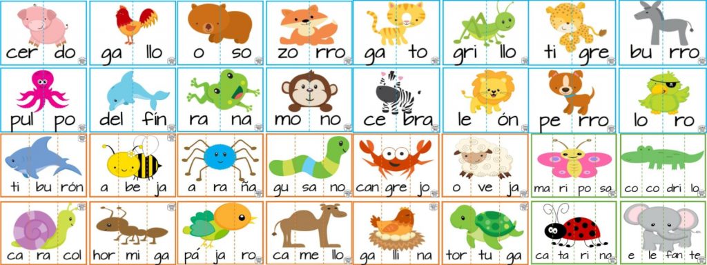 Descargar: Geniales tarjetas de animales divididas por sílabas