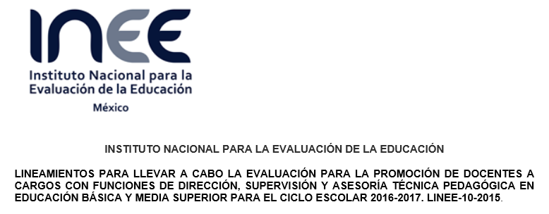 Los presentes lineamientos son aplicables para el ciclo escolar 2016 – 2017, y tienen por objeto establecer y describir los procesos de evaluación para la promoción de docentes a cargos con funciones de Dirección y Supervisión, así como para la promoción a funciones de Asesoría Técnica Pedagógica en planteles públicos de Educación Básica y Media Superior, mediante concursos de oposición que garanticen la idoneidad de los conocimientos y capacidades de los aspirantes según corresponde.