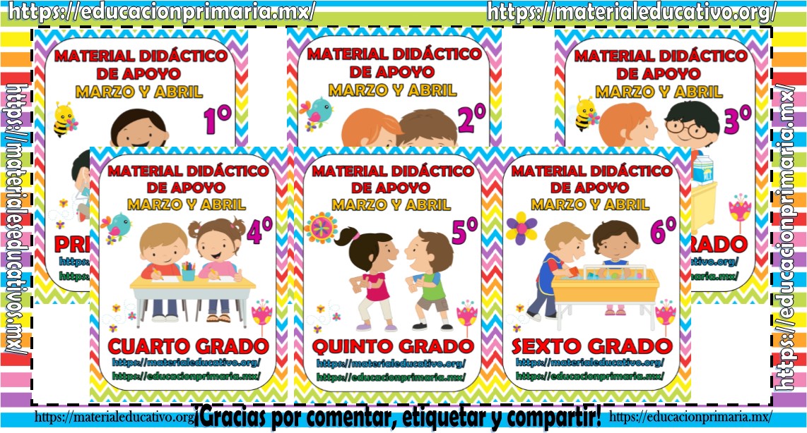 Compañeros y amigos que nos visitan estamos prácticamente a punto de iniciar el mes de marzo y por lo tanto les queremos compartir los Materiales didácticos de apoyo de todos los grados de los meses marzo y abril 2019, el cual contiene un gran variedad de actividades para trabajar durante esos meses, cabe resaltar y aclarar que es una recopilación de varios ciclos anteriores pero totalmente apegados a los contenidos de educación básica, estamos muy seguros que de la misma manera les será de gran utilidad para su práctica educativa, agradecemos a Mesa Técnica Pedagógica / Materiales Educativos y Apoyos Didácticos por elaborar y compartir con todos nosotros este material didáctico de apoyo, recuerden apoyarnos compartiendo nuestros enlaces en sus redes sociales.