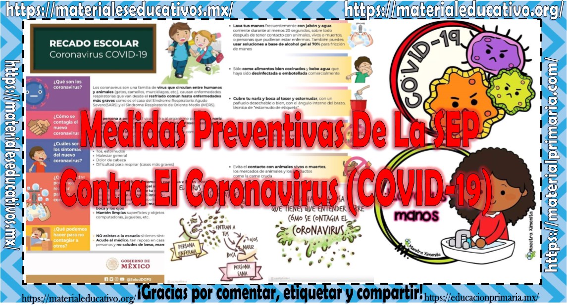 Amigos y compañeros docentes que nos visitan en esta ocasión queremos compartir con todos ustedes las Medidas preventivas contra el Coronavirus (COVID-19) de la SEP para poder prevenir el virus en nuestras escuelas e instituciones educativas.