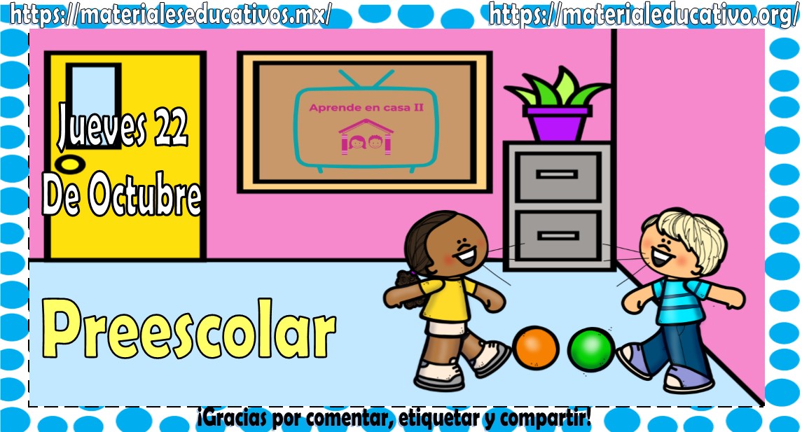 Amigos, compañeros docentes, padres de familia y alumnos que nos visitan, como ya es costumbre nosotros les proporcionaremos las clases contempladas para observarse en la TV del programa aprende en casa II, lo que antes se conocía como videos y preguntas. En esta oportunidad les queremos proporcionar las Mis clases de aprende en casa II de preescolar del jueves 22 de octubre del 2020, estaremos seguros que con este material podrá facilitar la realización de las actividades planteadas por parte del programa. Muchas gracias por visitarnos y recuerden que aquí podrán encontrar las preguntas, videos y todas las clases del programa de aprende en casa 2. Recuerden compartir nuestros enlaces en sus redes sociales y etiquetar a sus compañeros y amigos docentes en nuestras publicaciones.