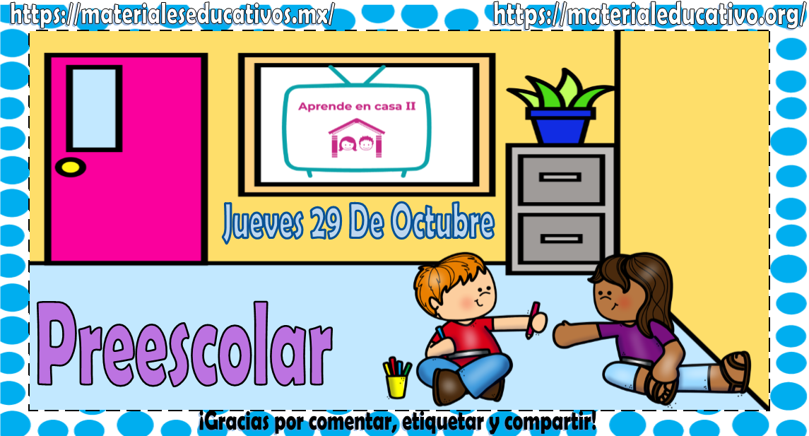 Amigos, compañeros docentes, padres de familia y alumnos que nos visitan, como ya es costumbre nosotros les proporcionaremos las clases contempladas para observarse en la TV del programa aprende en casa II, lo que antes se conocía como videos y preguntas. En esta oportunidad les queremos proporcionar las Mis clases de aprende en casa II de preescolar del jueves 29 de octubre del 2020, estaremos seguros que con este material podrá facilitar la realización de las actividades planteadas por parte del programa. Muchas gracias por visitarnos y recuerden que aquí podrán encontrar las preguntas, videos y todas las clases del programa de aprende en casa 2. Recuerden compartir nuestros enlaces en sus redes sociales y etiquetar a sus compañeros y amigos docentes en nuestras publicaciones.