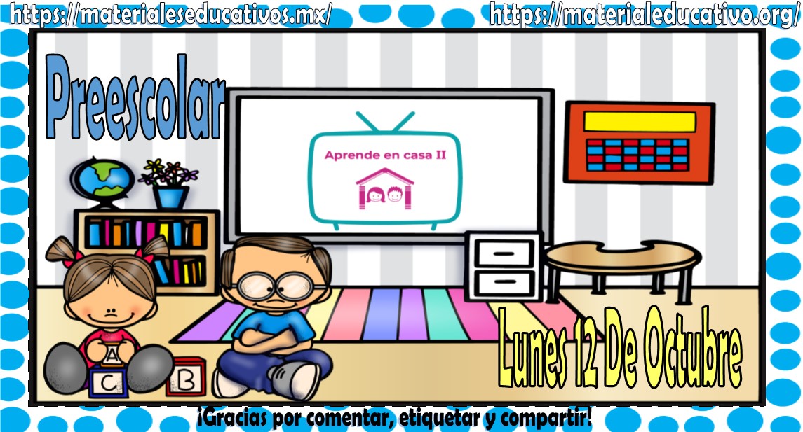 Amigos, compañeros docentes, padres de familia y alumnos que nos visitan, como ya es costumbre nosotros les proporcionaremos las clases contempladas para observarse en la TV del programa aprende en casa II, lo que antes se conocía como videos y preguntas. En esta oportunidad les queremos proporcionar las Mis clases de aprende en casa II de preescolar del lunes 12 de octubre del 2020, estaremos seguros que con este material podrá facilitar la realización de las actividades planteadas por parte del programa. Muchas gracias por visitarnos y recuerden que aquí podrán encontrar las preguntas, videos y todas las clases del programa de aprende en casa 2. Recuerden compartir nuestros enlaces en sus redes sociales y etiquetar a sus compañeros y amigos docentes en nuestras publicaciones.