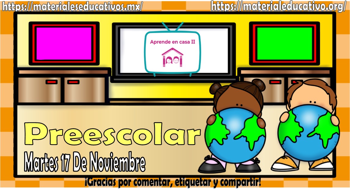 Amigos, compañeros docentes, padres de familia y alumnos que nos visitan, como ya es costumbre nosotros les proporcionaremos las clases contempladas para observarse en la TV del programa aprende en casa II, lo que antes se conocía como videos y preguntas. En esta oportunidad les queremos proporcionar las Mis clases de aprende en casa II de preescolar del martes 17 de noviembre del 2020, estaremos seguros que con este material podrá facilitar la realización de las actividades planteadas por parte del programa. Muchas gracias por visitarnos y recuerden que aquí podrán encontrar las preguntas, videos y todas las clases del programa de aprende en casa 2. Recuerden compartir nuestros enlaces en sus redes sociales y etiquetar a sus compañeros y amigos docentes en nuestras publicaciones.