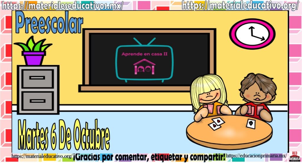 Amigos, compañeros docentes, padres de familia y alumnos que nos visitan, como ya es costumbre nosotros les proporcionaremos las clases contempladas para observarse en la TV del programa aprende en casa II, lo que antes se conocía como videos y preguntas. En esta oportunidad les queremos proporcionar las Mis clases de aprende en casa II de preescolar del martes 6 de octubre del 2020, estaremos seguros que con este material podrá facilitar la realización de las actividades planteadas por parte del programa. Muchas gracias por visitarnos y recuerden que aquí podrán encontrar las preguntas, videos y todas las clases del programa de aprende en casa 2. Recuerden compartir nuestros enlaces en sus redes sociales y etiquetar a sus compañeros y amigos docentes en nuestras publicaciones.