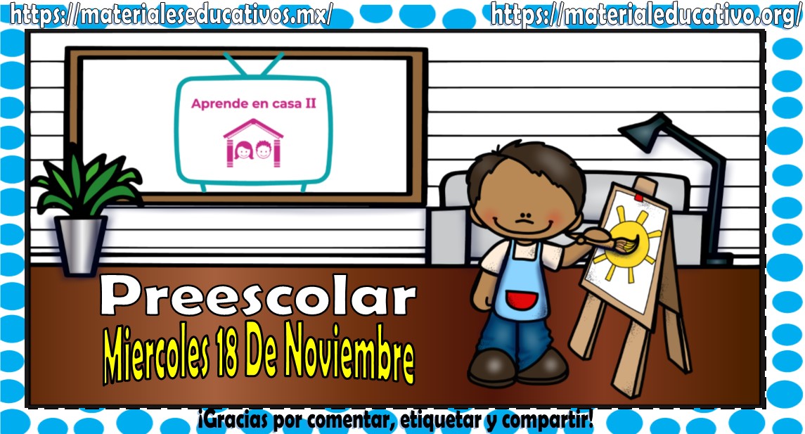 Amigos, compañeros docentes, padres de familia y alumnos que nos visitan, como ya es costumbre nosotros les proporcionaremos las clases contempladas para observarse en la TV del programa aprende en casa II, lo que antes se conocía como videos y preguntas. En esta oportunidad les queremos proporcionar las Mis clases de aprende en casa II de preescolar del miércoles 18 de noviembre del 2020, estaremos seguros que con este material podrá facilitar la realización de las actividades planteadas por parte del programa. Muchas gracias por visitarnos y recuerden que aquí podrán encontrar las preguntas, videos y todas las clases del programa de aprende en casa 2. Recuerden compartir nuestros enlaces en sus redes sociales y etiquetar a sus compañeros y amigos docentes en nuestras publicaciones.