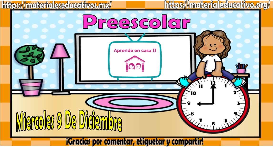 Amigos, compañeros docentes, padres de familia y alumnos que nos visitan, como ya es costumbre nosotros les proporcionaremos las clases contempladas para observarse en la TV del programa aprende en casa II, lo que antes se conocía como videos y preguntas. En esta oportunidad les queremos proporcionar las Mis clases de aprende en casa II de preescolar del miércoles 9 de diciembre del 2020, estaremos seguros que con este material podrá facilitar la realización de las actividades planteadas por parte del programa. Muchas gracias por visitarnos y recuerden que aquí podrán encontrar las preguntas, videos y todas las clases del programa de aprende en casa 2. Recuerden compartir nuestros enlaces en sus redes sociales y etiquetar a sus compañeros y amigos docentes en nuestras publicaciones.