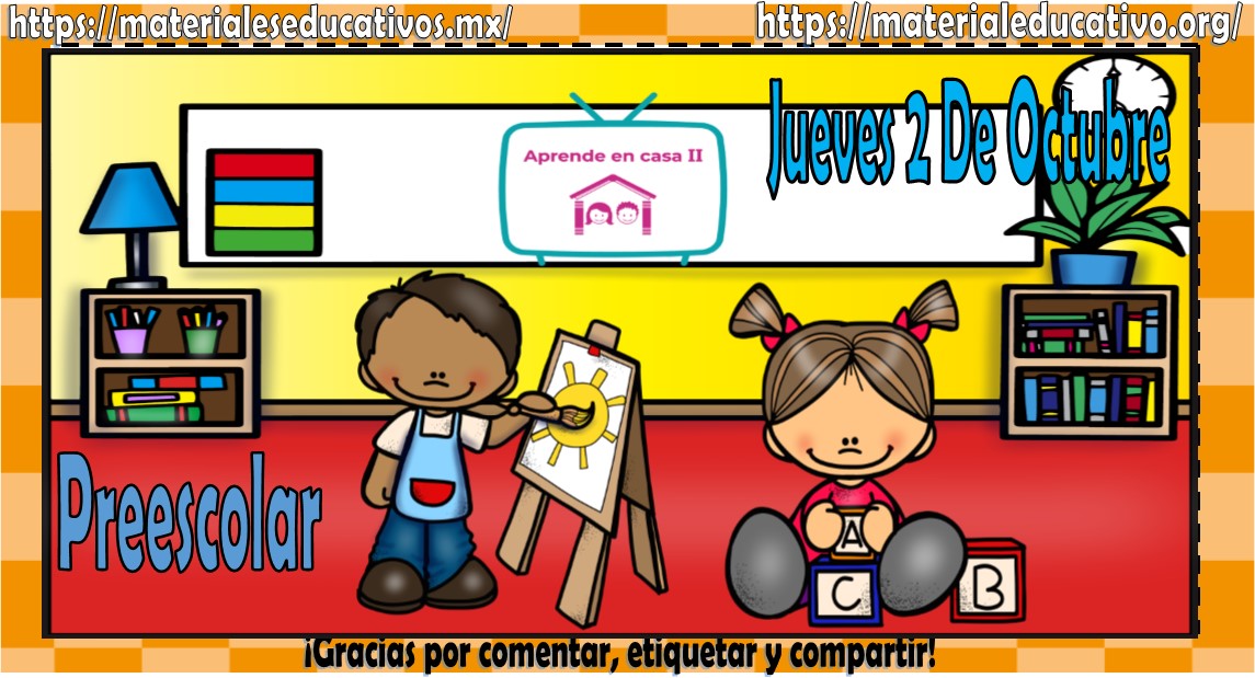 Amigos, compañeros docentes, padres de familia y alumnos que nos visitan, como ya es costumbre nosotros les proporcionaremos las clases contempladas para observarse en la TV del programa aprende en casa II, lo que antes se conocía como videos y preguntas. En esta oportunidad les queremos proporcionar las Mis clases de aprende en casa II de preescolar del viernes 2 de octubre del 2020, estaremos seguros que con este material podrá facilitar la realización de las actividades planteadas por parte del programa. Muchas gracias por visitarnos y recuerden que aquí podrán encontrar las preguntas, videos y todas las clases del programa de aprende en casa 2. Recuerden compartir nuestros enlaces en sus redes sociales y etiquetar a sus compañeros y amigos docentes en nuestras publicaciones.