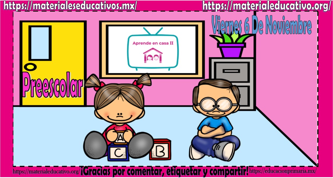 Amigos, compañeros docentes, padres de familia y alumnos que nos visitan, como ya es costumbre nosotros les proporcionaremos las clases contempladas para observarse en la TV del programa aprende en casa II, lo que antes se conocía como videos y preguntas. En esta oportunidad les queremos proporcionar las Mis clases de aprende en casa II de preescolar del viernes 6 de noviembre del 2020, estaremos seguros que con este material podrá facilitar la realización de las actividades planteadas por parte del programa. Muchas gracias por visitarnos y recuerden que aquí podrán encontrar las preguntas, videos y todas las clases del programa de aprende en casa 2. Recuerden compartir nuestros enlaces en sus redes sociales y etiquetar a sus compañeros y amigos docentes en nuestras publicaciones.