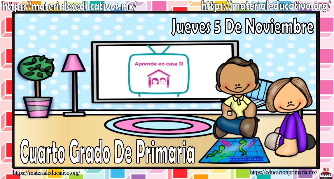 Amigos, compañeros docentes, padres de familia y alumnos que nos visitan, como ya es costumbre nosotros les proporcionaremos las clases contempladas para observarse en la TV del programa aprende en casa II, lo que antes se conocía como videos y preguntas. En esta oportunidad les queremos proporcionar las clases del cuarto grado de primaria del jueves 5 de noviembre del 2020 del presente ciclo escolar 2020 – 2021, estaremos seguros que con este material podrá facilitar la realización de las actividades planteadas por parte del programa. Muchas gracias por visitarnos y recuerden que aquí podrán encontrar las preguntas, videos y todas las clases del programa de aprende en casa 2. Recuerden compartir nuestros enlaces en sus redes sociales y etiquetar a sus compañeros y amigos docentes en nuestras publicaciones.