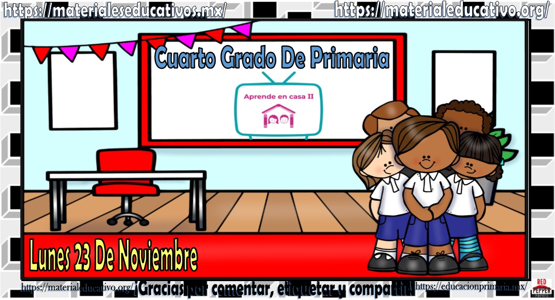 Amigos, compañeros docentes, padres de familia y alumnos que nos visitan, como ya es costumbre nosotros les proporcionaremos las clases contempladas para observarse en la TV del programa aprende en casa II, lo que antes se conocía como videos y preguntas. En esta oportunidad les queremos proporcionar las clases del cuarto grado de primaria del lunes 23 de noviembre del 2020 del presente ciclo escolar 2020 – 2021, estaremos seguros que con este material podrá facilitar la realización de las actividades planteadas por parte del programa. Muchas gracias por visitarnos y recuerden que aquí podrán encontrar las preguntas, videos y todas las clases del programa de aprende en casa 2. Recuerden compartir nuestros enlaces en sus redes sociales y etiquetar a sus compañeros y amigos docentes en nuestras publicaciones.
