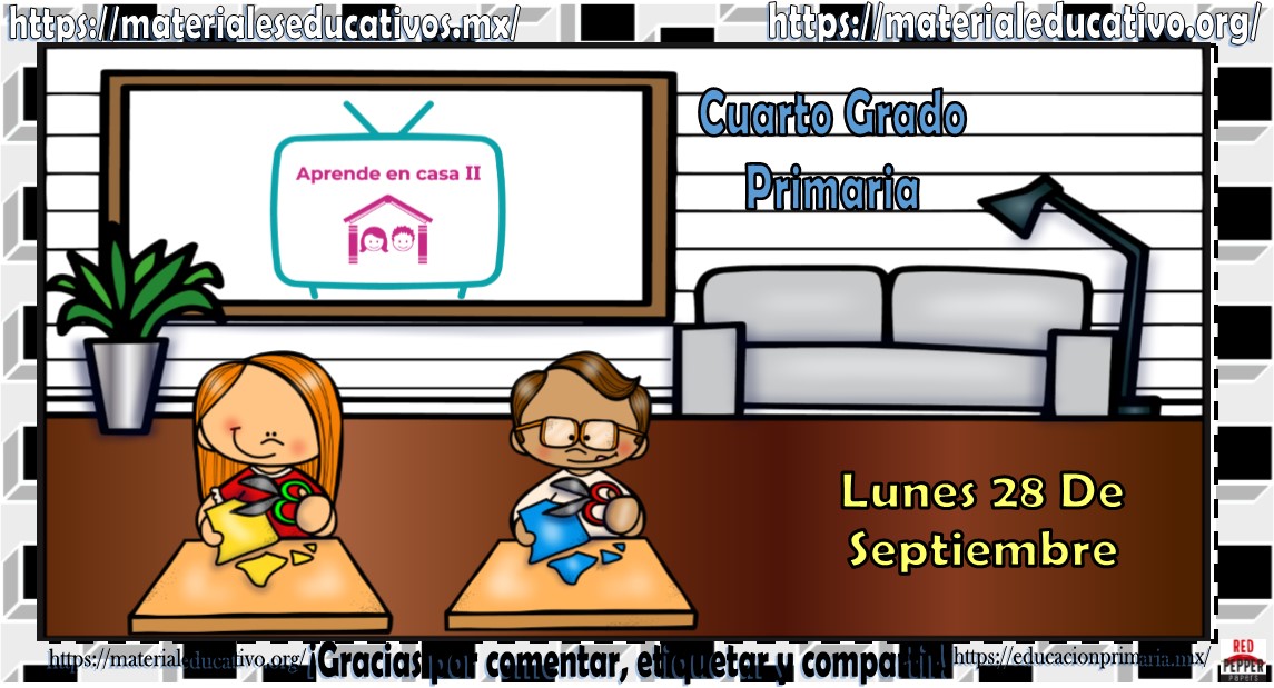 Amigos, compañeros docentes, padres de familia y alumnos que nos visitan, como ya es costumbre nosotros les proporcionaremos las clases contempladas para observarse en la TV del programa aprende en casa II, lo que antes se conocía como videos y preguntas. En esta oportunidad les queremos proporcionar las clases del cuarto grado de primaria del lunes 28 de septiembre del 2020 del presente ciclo escolar 2020 – 2021, estaremos seguros que con este material podrá facilitar la realización de las actividades planteadas por parte del programa. Muchas gracias por visitarnos y recuerden que aquí podrán encontrar las preguntas, videos y todas las clases del programa de aprende en casa 2. Recuerden compartir nuestros enlaces en sus redes sociales y etiquetar a sus compañeros y amigos docentes en nuestras publicaciones.