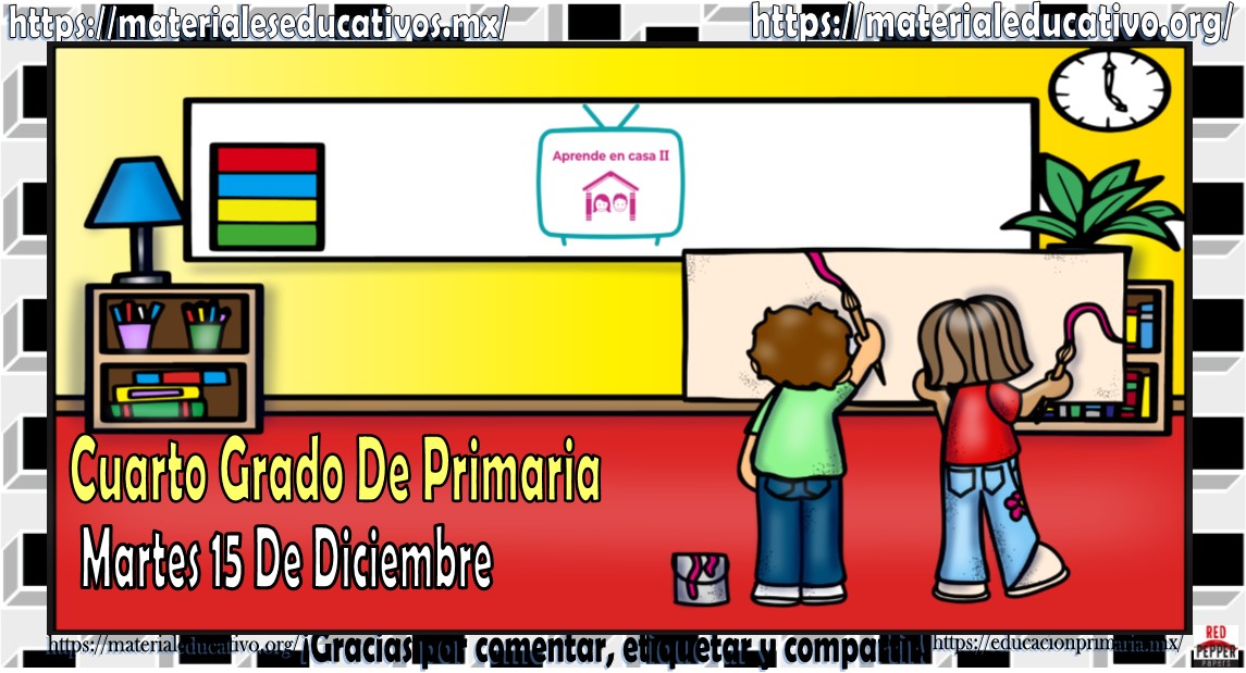 Amigos, compañeros docentes, padres de familia y alumnos que nos visitan, como ya es costumbre nosotros les proporcionaremos las clases contempladas para observarse en la TV del programa aprende en casa II, lo que antes se conocía como videos y preguntas. En esta oportunidad les queremos proporcionar las clases del cuarto grado de primaria del martes 15 de diciembre del 2020 del presente ciclo escolar 2020 – 2021, estaremos seguros que con este material podrá facilitar la realización de las actividades planteadas por parte del programa. Muchas gracias por visitarnos y recuerden que aquí podrán encontrar las preguntas, videos y todas las clases del programa de aprende en casa 2. Recuerden compartir nuestros enlaces en sus redes sociales y etiquetar a sus compañeros y amigos docentes en nuestras publicaciones.
