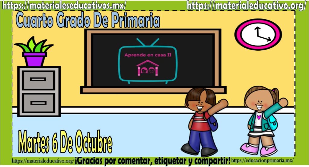Amigos, compañeros docentes, padres de familia y alumnos que nos visitan, como ya es costumbre nosotros les proporcionaremos las clases contempladas para observarse en la TV del programa aprende en casa II, lo que antes se conocía como videos y preguntas. En esta oportunidad les queremos proporcionar las clases del cuarto grado de primaria del martes 6 de octubre del 2020 del presente ciclo escolar 2020 – 2021, estaremos seguros que con este material podrá facilitar la realización de las actividades planteadas por parte del programa. Muchas gracias por visitarnos y recuerden que aquí podrán encontrar las preguntas, videos y todas las clases del programa de aprende en casa 2. Recuerden compartir nuestros enlaces en sus redes sociales y etiquetar a sus compañeros y amigos docentes en nuestras publicaciones.