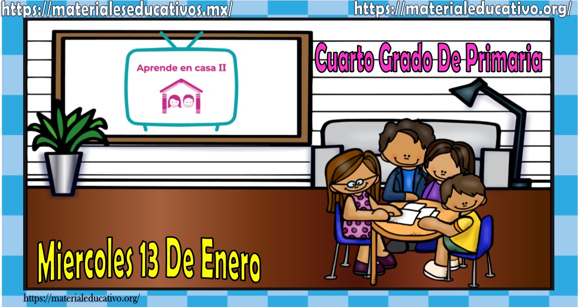 Amigos, compañeros docentes, padres de familia y alumnos que nos visitan, como ya es costumbre nosotros les proporcionaremos las clases contempladas para observarse en la TV del programa aprende en casa II, lo que antes se conocía como videos y preguntas. En esta oportunidad les queremos proporcionar las clases del cuarto grado de primaria del miércoles 13 de enero del 2021 del presente ciclo escolar 2020 – 2021, estaremos seguros que con este material podrá facilitar la realización de las actividades planteadas por parte del programa. Muchas gracias por visitarnos y recuerden que aquí podrán encontrar las preguntas, videos y todas las clases del programa de aprende en casa 2. Recuerden compartir nuestros enlaces en sus redes sociales y etiquetar a sus compañeros y amigos docentes en nuestras publicaciones.