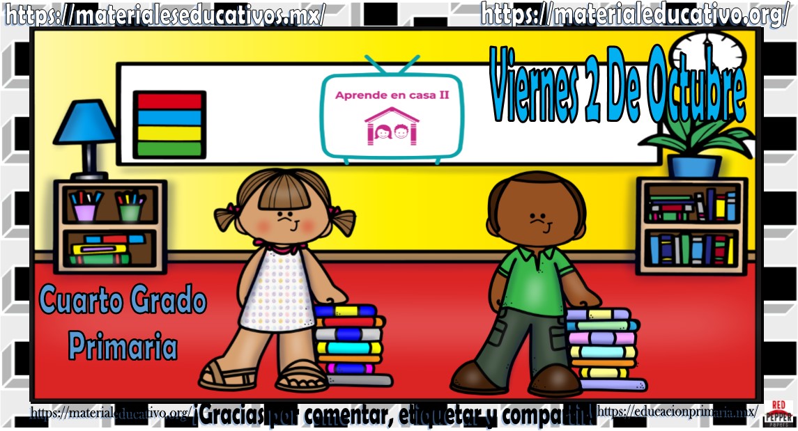 Amigos, compañeros docentes, padres de familia y alumnos que nos visitan, como ya es costumbre nosotros les proporcionaremos las clases contempladas para observarse en la TV del programa aprende en casa II, lo que antes se conocía como videos y preguntas. En esta oportunidad les queremos proporcionar las clases del cuarto grado de primaria del viernes 2 de octubre del 2020 del presente ciclo escolar 2020 – 2021, estaremos seguros que con este material podrá facilitar la realización de las actividades planteadas por parte del programa. Muchas gracias por visitarnos y recuerden que aquí podrán encontrar las preguntas, videos y todas las clases del programa de aprende en casa 2. Recuerden compartir nuestros enlaces en sus redes sociales y etiquetar a sus compañeros y amigos docentes en nuestras publicaciones.