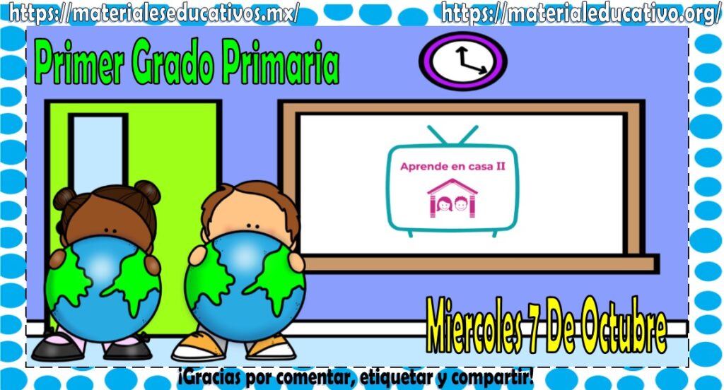 Amigos, compañeros docentes, padres de familia y alumnos que nos visitan, como ya es costumbre nosotros les proporcionaremos las clases contempladas para observarse en la TV del programa aprende en casa II, lo que antes se conocía como videos y preguntas. En esta oportunidad les queremos proporcionar las clases del primer grado de primaria del miércoles 7 de octubre del 2020 del presente ciclo escolar 2020 – 2021, estaremos seguros que con este material podrá facilitar la realización de las actividades planteadas por parte del programa. Muchas gracias por visitarnos y recuerden que aquí podrán encontrar las preguntas, videos y todas las clases del programa de aprende en casa 2. Recuerden compartir nuestros enlaces en sus redes sociales y etiquetar a sus compañeros y amigos docentes en nuestras publicaciones.
