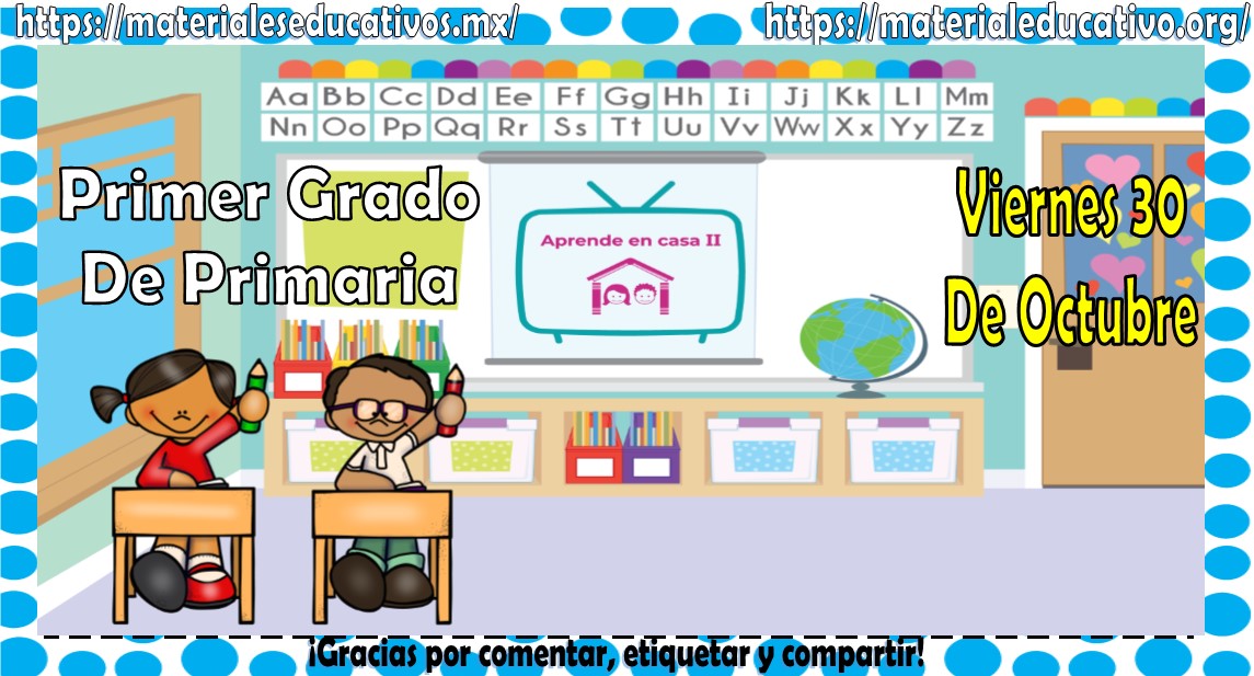 Amigos, compañeros docentes, padres de familia y alumnos que nos visitan, como ya es costumbre nosotros les proporcionaremos las clases contempladas para observarse en la TV del programa aprende en casa II, lo que antes se conocía como videos y preguntas. En esta oportunidad les queremos proporcionar las clases del primer grado de primaria del viernes 30 de octubre del 2020 del presente ciclo escolar 2020 – 2021, estaremos seguros que con este material podrá facilitar la realización de las actividades planteadas por parte del programa. Muchas gracias por visitarnos y recuerden que aquí podrán encontrar las preguntas, videos y todas las clases del programa de aprende en casa 2. Recuerden compartir nuestros enlaces en sus redes sociales y etiquetar a sus compañeros y amigos docentes en nuestras publicaciones.