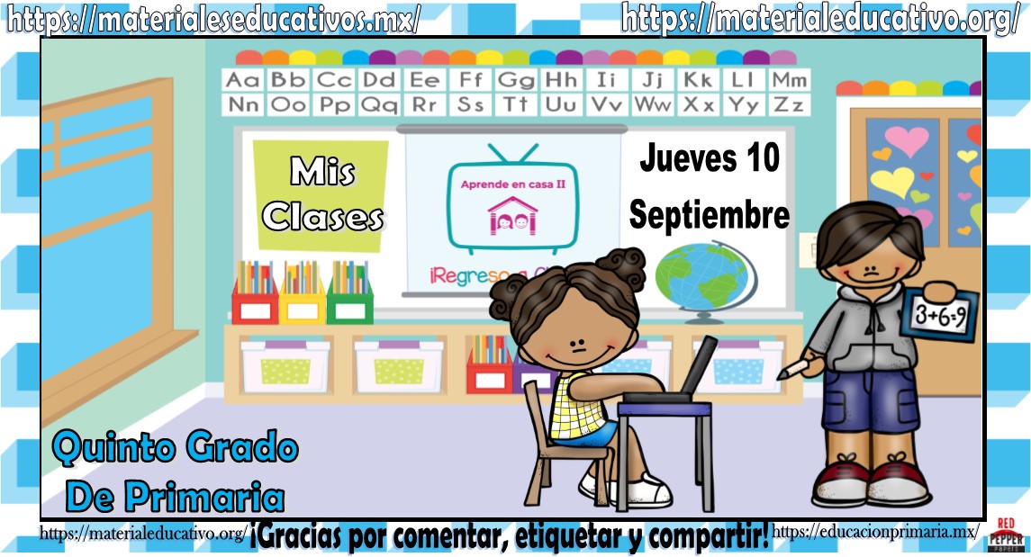 Amigos, compañeros docentes, padres de familia y alumnos que nos visitan, como ya es costumbre nosotros les proporcionaremos las clases contempladas para observarse en la TV del programa aprende en casa II, lo que antes se conocía como videos y preguntas. En esta oportunidad les queremos proporcionar las clases del quinto grado de primaria del jueves 10 de septiembre del 2020 del presente ciclo escolar 2020 – 2021, estaremos seguros que con este material podrá facilitar la realización de las actividades planteadas por parte del programa. Muchas gracias por visitarnos y recuerden que aquí podrán encontrar las preguntas, videos y todas las clases del programa de aprende en casa 2. Recuerden compartir nuestros enlaces en sus redes sociales y etiquetar a sus compañeros y amigos docentes en nuestras publicaciones.